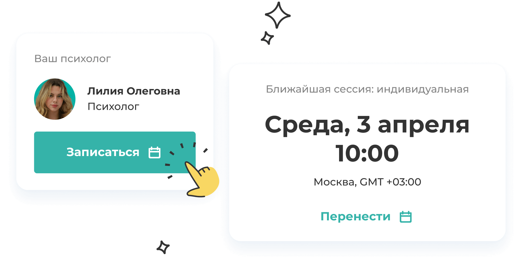 Выбирайте дату и время сессии, оплачивайте и переносите встречи.